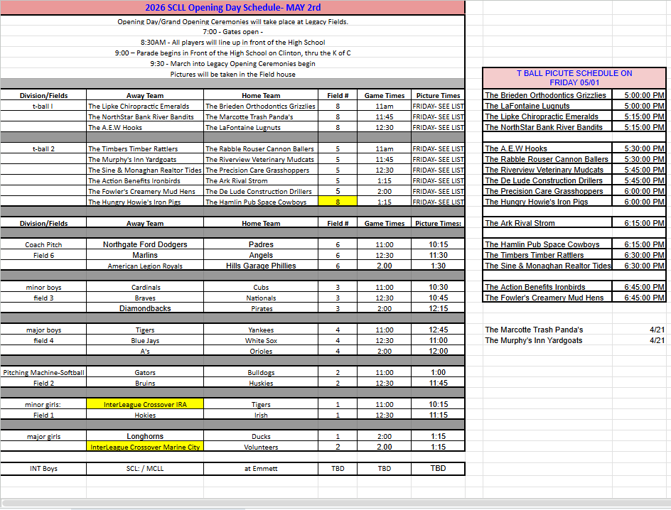 This year we are celebrating the 74th Anniversary of SCLL! We encourage all of you to invite everyone, EVERYONE! to the parade and to your youngster's first game of the season. It truly is a special day in St. Clair. Ice Cream is still just $1.